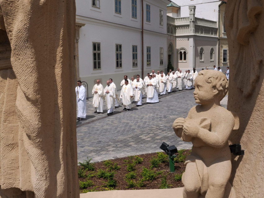 A mai napnak kiemelt ünnepeltjei ők – fogalmazott szentbeszéde elején a veszprémi érsek. – A jubileum miatt, amiről tudjuk, hogy mindig Isten rendjének megjelenését és az új rendnek, az Isten országa szerinti rendnek megerősödését jelenti.