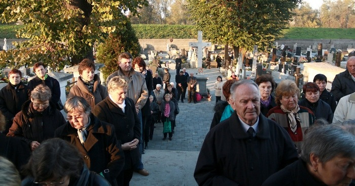 Schönberger Jenő püspök november 2-án délután mutatott be szentmisét az elhunytakért a temetői kápolnában, amelyet zsúfolásig megtöltöttek a hívek.