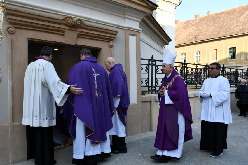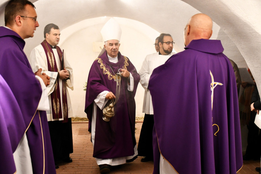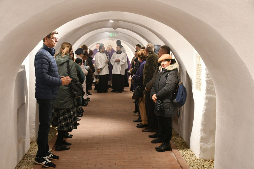 A szentmisét követően Pál József Csaba megyéspüspök a jelen lévő papokkal és hívekkel együtt a székesegyház kriptájában imádkozott mindazok sírjánál, akik ott találtak örök nyugalomra.