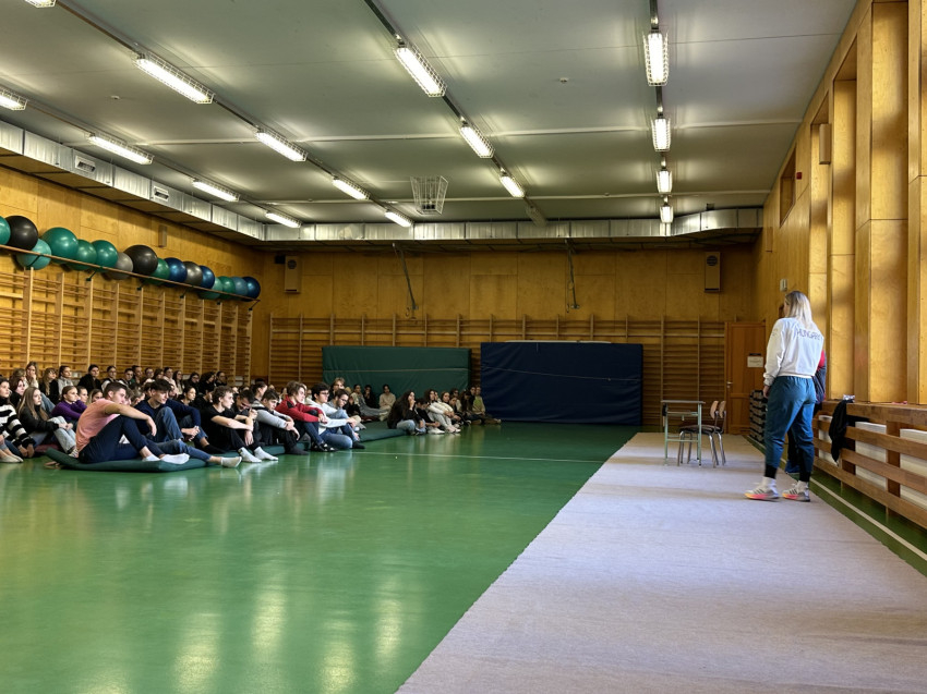 Hámori Luca olimpikon az első magyar női ökölvívóként jutott ki az idei párizsi olimpiára 22 évesen. Az intézmény tanulóinak szóló előadását egy rövid átmozgató edzéssel kezdte, csatlakoztak hozzá az iskola ökölvívói is, akikkel együtt a sport alapmozdulatait tanították meg a résztvevőknek. Ezután a sportoló az olimpiáig vezető útjáról és a sporttal kapcsolatos élményeiről mesélt. Majd a diákok és tanáraik feltehették kérdéseiket, amelyek az idei olimpia és az élsport kapcsán megfogalmazódtak bennük.