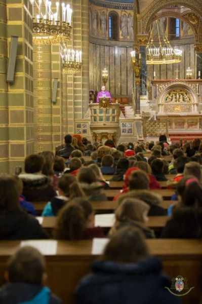 Szentbeszédében a főpásztor a lélek megújulását szolgáló böjt jelentőségéről beszélt a diákoknak. A testi önmegtartóztatás mellett a kísértéseknek való ellenállás, a rossz szokásokról való lemondás segíti ezt a folyamatot. A irgalmasság éve az irgalmasság testi és lelki cselekedeteinek fontosságára irányítja a figyelmünket. Az érsek azonban óva intett attól, hogy jótékony cselekedeteinkkel nyilvánosan kérkedjünk. A főpásztor hangsúlyozta, a bűnbánat és a tízparancsolat megtartása üdvösségünk mellett földi boldogságunk kulcsa. Személyiségünk sok területen kiteljesedhet, önmagunk felülmúlása azonban az ima ereje által lehetséges.