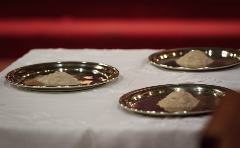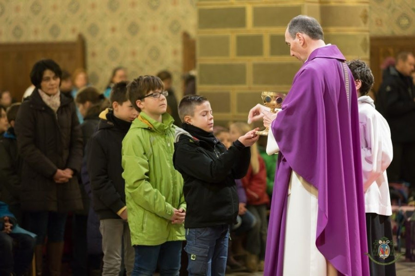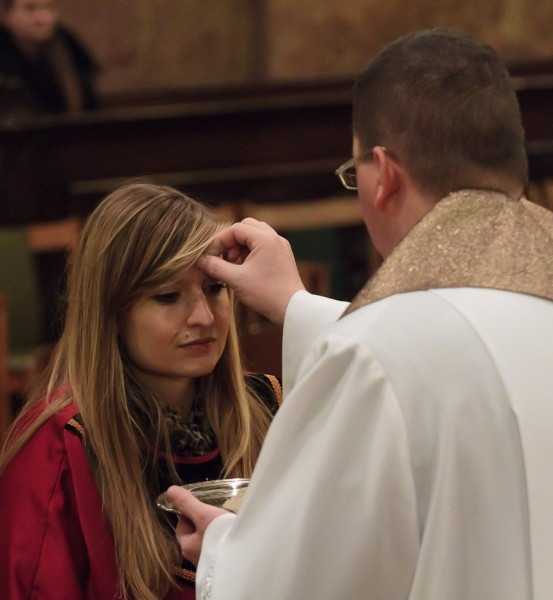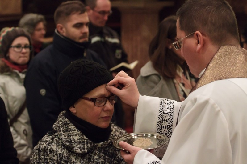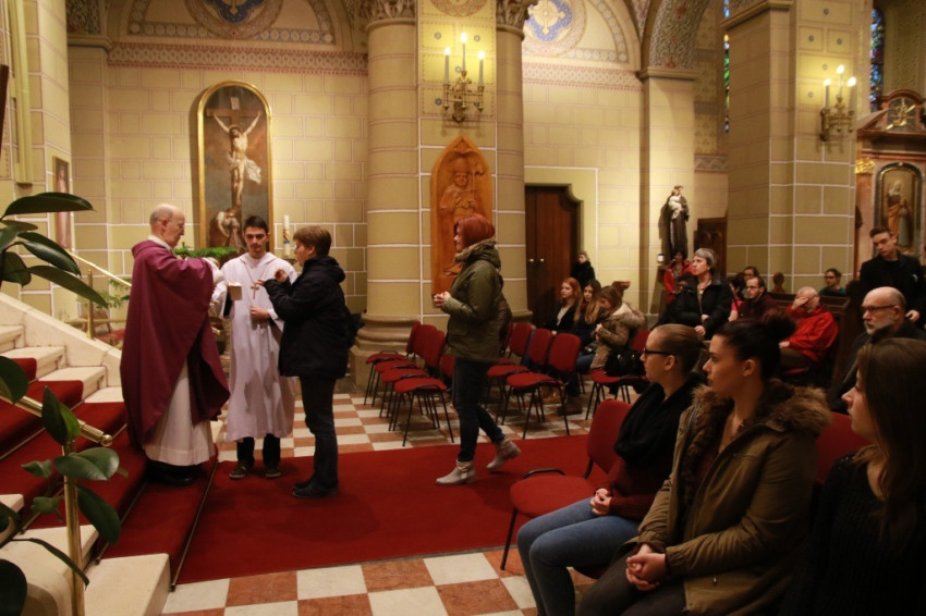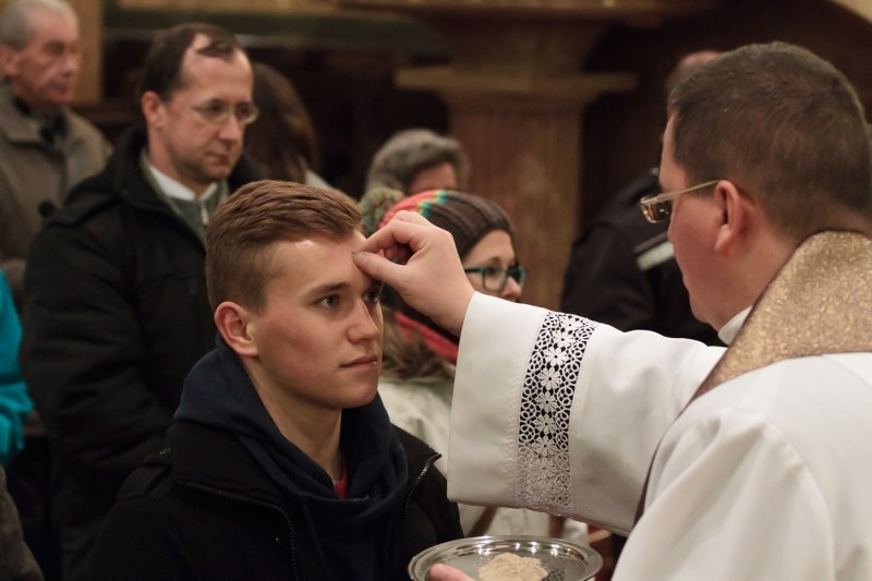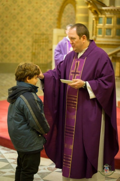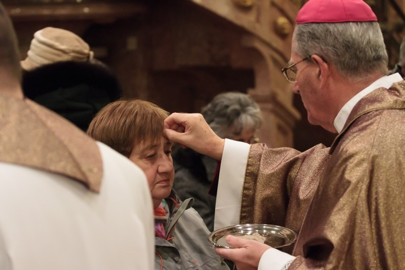 A reggeli ünnepi szentmisén Udvardy György megyéspüspök és a koncelebráns papok egymás és a győri katolikus iskolaközpont közössége tagjai (diákok, tanárok, szülők) homlokára is felrajzolták hamuval a kereszt jelét.