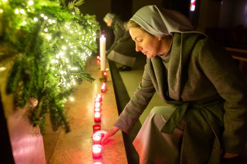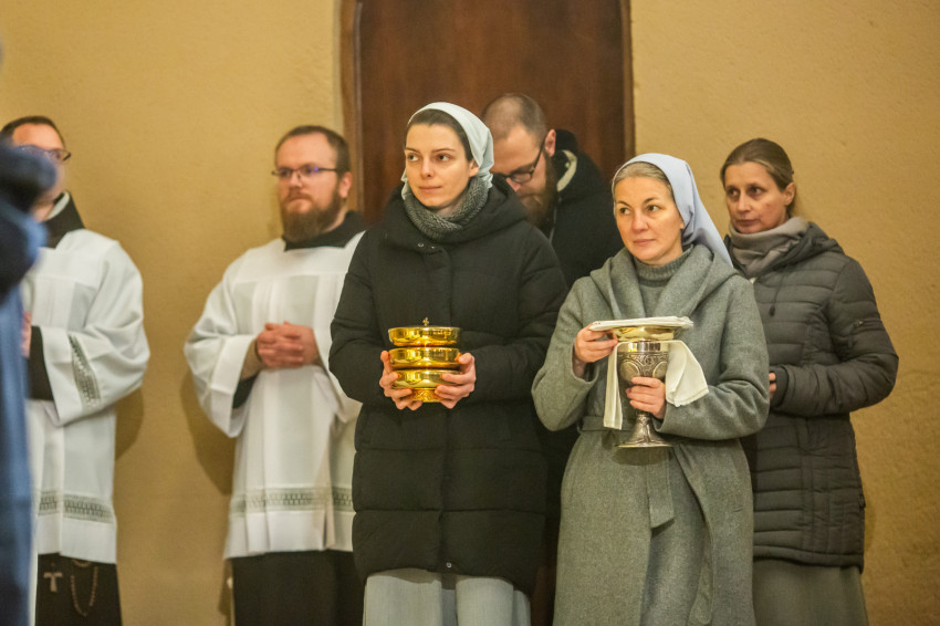 A vesperás után a gyertyaszenteléssel folytatódott az ünnepi liturgia, majd a megszentelt életet élők mécseseket helyeztek el az áldoztatórácsnál – ennek a gesztusnak a jelképiségét a szentmisét bemutató Berhidai Piusz OFM tartományfőnök úgy fogalmazta meg: