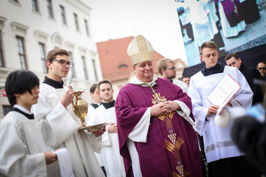 A főpásztor ezt követően megfogalmazta a harangok hármas küldetését. Először is hívják az élőket, a keresztségben az Isten számára lefoglalt népet, továbbá emlékeztessenek arra, hogy a hívő embernek minden embertársa irányában küldetése van. A harangok második feladata az, hogy emlékeztessenek bennünket a halottainkra, azokra, akik már nincsenek köztünk, emellett pedig arra, hogy a mi életünk is véges, és úgy kell élnünk, ahogy a bencés regula tanácsolja a keresztény embernek: naponta gyarapodva a szeretetben. A harangok harmadik küldetése a jó és rossz közötti választásra való figyelemfelhívás. Várszegi Asztrik a jó és rossz közötti választás fontossága kapcsán kiemelte Jézus mélységes realizmusát: imádságában nem azt kérte az Atyától, hogy övéit szabadítsa meg ettől a világtól, hanem azt, hogy őrizze meg őket a rossztól. A főapát hangsúlyozta, a harangok hármas küldetése mellett a legfőbb, hogy Isten irgalmas szeretetére irányítsák a figyelmünket.