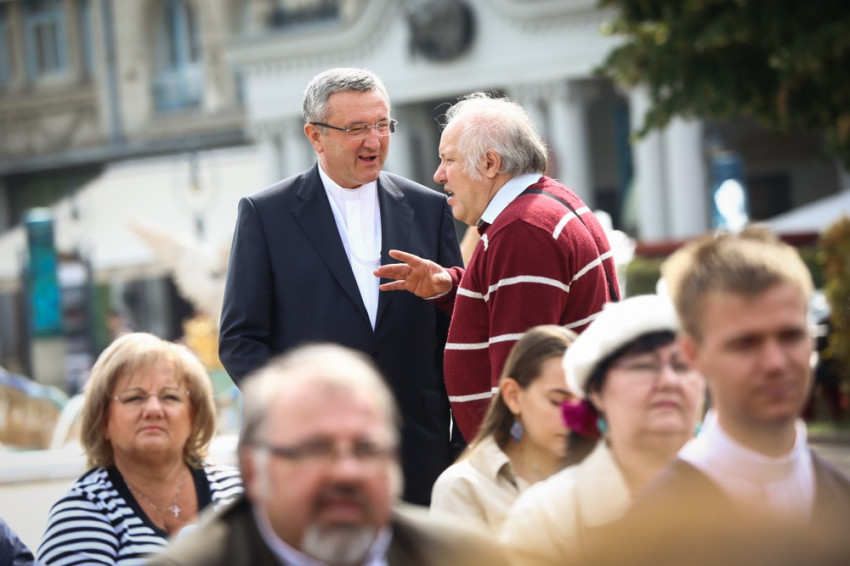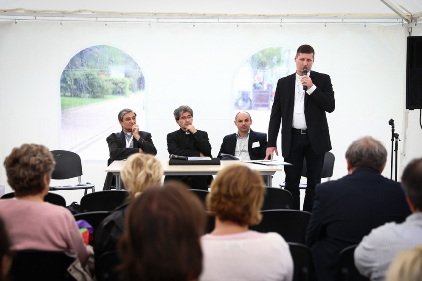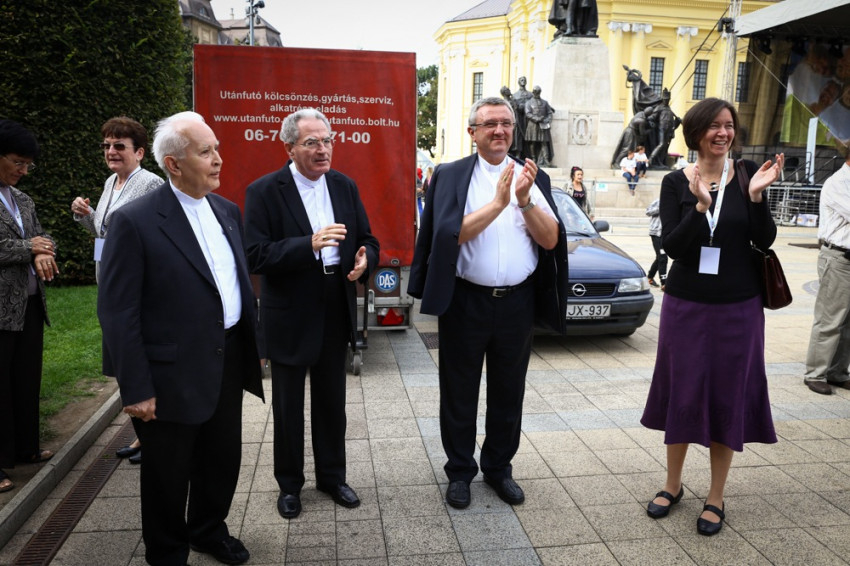 A katolikus iskolák társadalomban betöltött szerepéről Pápai Lajos győri megyéspüspök, a Magyar Katolikus Püspöki Konferencia területi felelőse, Barcsák Marianna, a Katolikus Pedagógiai Szervezési és Továbbképzési Intézet vezetőhelyettese és Bartháné Kmetty Éva, a Pedagógiai Szakszolgálat vezetője beszélgettek. A magyar iskolarendszer tanító rendjei is egy asztalhoz ültek: a piaristákat Labancz Zsolt tartományfőnök, a ferenceseket Bécser Péter P. Róbert, az esztergomi Temesvári Pelbárt Gimnázium, az orsolyitákat Matkovics Mária Emerica tartományfőnöknő képviselte.