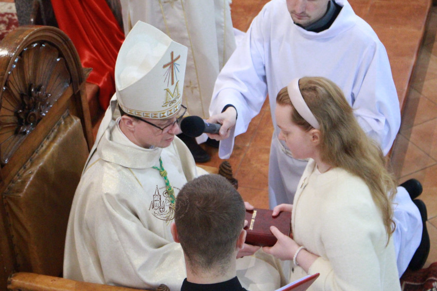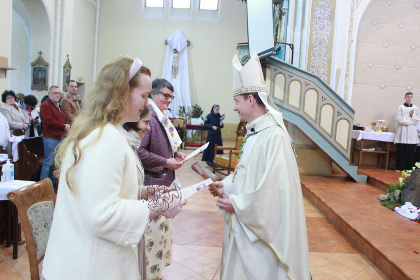 Ezen a napon megszentelt szüzességre tett örökfogadalmat Hoffmann Tanya-Maria és Nobilis Kinga, velük együtt egy évre Summerer Vanessa. Rövid életrajzukat a szentmise előtt Szergij Gerzanics atya, a püspökség irodaigazgatója olvasta fel.