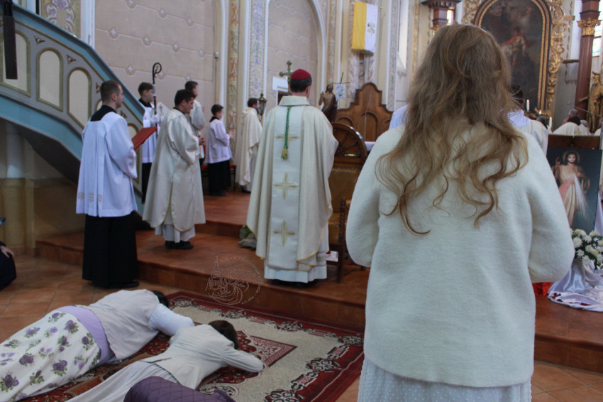 „Ők hárman azért vannak most itt, mert találkoztak a Feltámadottal és az életükkel tanúságot akarnak tenni róla. (…) Világunk legnagyobb drámája, szomorúsága, hogy sokan nem tudják, mennyire szereti őket Isten. Ezért hív az Isten embereket a neki szenteltségre, hogy rajtuk keresztül is sokan találkozzanak vele. A hivatás ajándék, kegyelem Istentől” – mondta többek között a püspök, aláhúzva az Istentől kapott hivatás tanúságtevő erejét. A prédikáció végén pedig azért fohászkodott, hogy a Szentlélek töltsön el bennünket olyan erős és személyes szeretettel, amely legyőz minden nehézséget és kísértést.