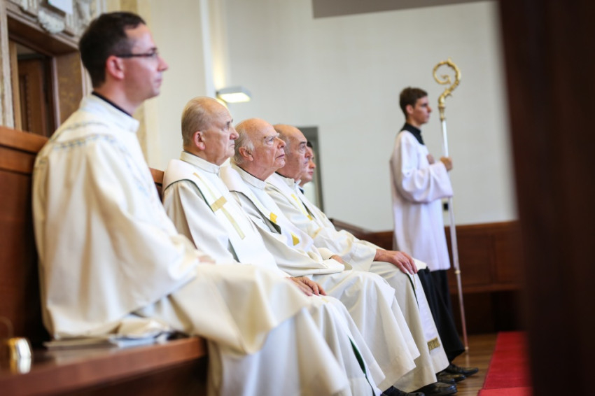 Labancz Zsolt piarista tartományfőnök a megjelenteket köszöntve elmondta, Ferenc pápa ezt az évet a piaristák számára jubileumi évnek nyilvánította. Ez azt jelenti, hogy ezen időszak alatt különös módon fordulhatnak az Úristenhez kegyelmi ajándékaiért, és abban is biztosak lehetnek, hogy Ő ezt meg is fogja adni. Felhívta a figyelmet arra a zászlóra, mely idén készült a jubileumok alkalmából. Rajta a Szűzanya terjeszti ki palástját a piaristákra. Felette pedig ez olvasható: „Tu et filios tuos non deseram” (Téged és fiaidat nem fogom elhagyni.)