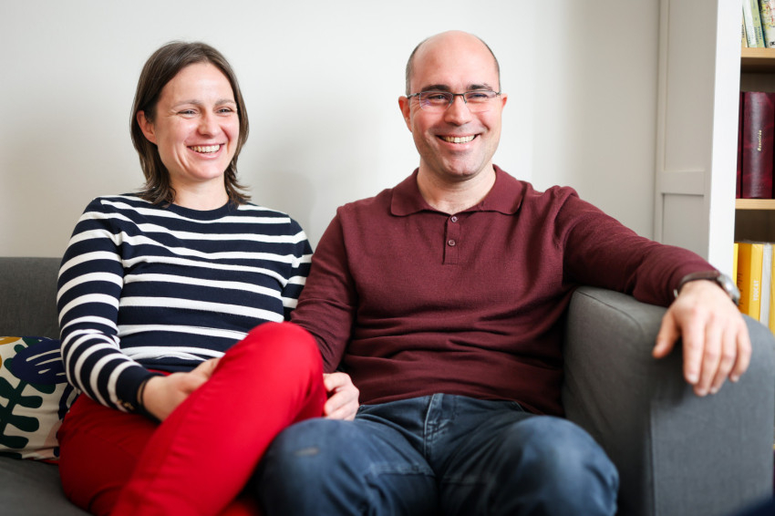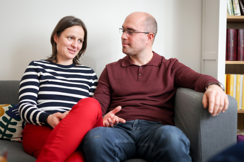 Réka és István az egyetemen találkoztak, harmadévben közös előadásokra jártak, sokat utaztak együtt a metrón, így volt alkalmuk beszélgetni, és egyre jobban megismerni egymást. István elmesélte, hogy amikor már fontolgatta a lánykérést, a Magyar Kurír egyik cikkében – amit a mai napig őriz – olvasta Ferenc pápa gondolatait arról, hogy kérjük a Szűzanya segítségét, és merjük elhatározni magunkat, döntéseket hozni. Ez megerősítést jelentett számára. Megismerkedésük után négy évvel, a Tihanyi Bencés Apátság előtt álló keresztnél megkérte Réka kezét, és az első csókhoz képest napra pontosan öt évvel később összeházasodtak. Mindketten úgy érezték, hogy megtalálták a társukat, akit kerestek. Ők úgy fogalmaznak: egyszerre „pendülnek”. Sokszor ki sem kell mondaniuk, mit szeretnének, szinte belelátnak egymás gondolataiba. Idén nyáron tizenkét éve lesz annak, hogy házasságot kötöttek Budapesten, az angyalföldi Szent Mihály-plébánián, ami meghatározó hely az életükben. Most is itt találkoztunk velük.