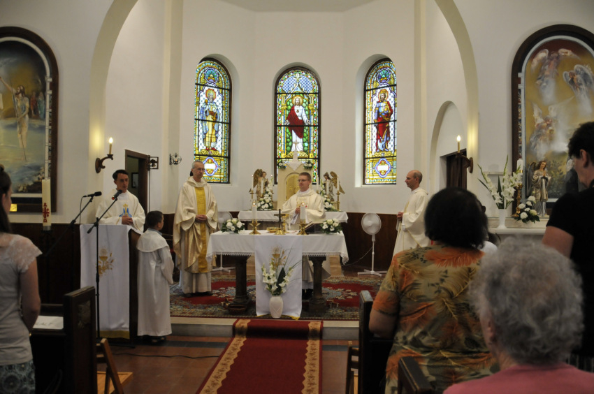 A vasárnapi szentmisét Tamás Zoltán újmisés lelkipásztor mutatta be, aki a záróáldást követően újmisés áldásban részesítette a megjelenteket. A szertartást követően a templomkertben szeretetvendégségen látták vendégül a résztvevőket. A találkozót vasárnap este közös imádság zárta, melyet Csernai Balázs veszprémi egyetemi lelkész vezetett.