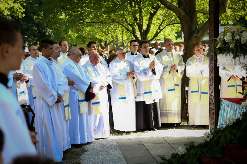 A szentmise elején Stanislav Zvolensky pozsonyi érsek szólt a kegyhelyre érkezett több száz zarándokhoz, akik megtöltötték a kegytemplom kertjét.