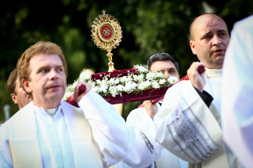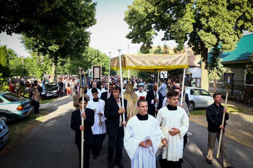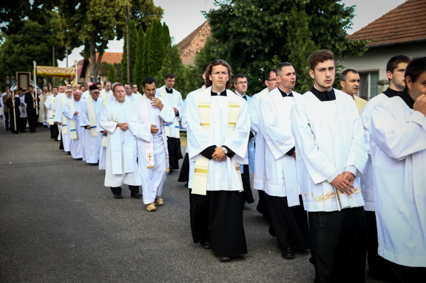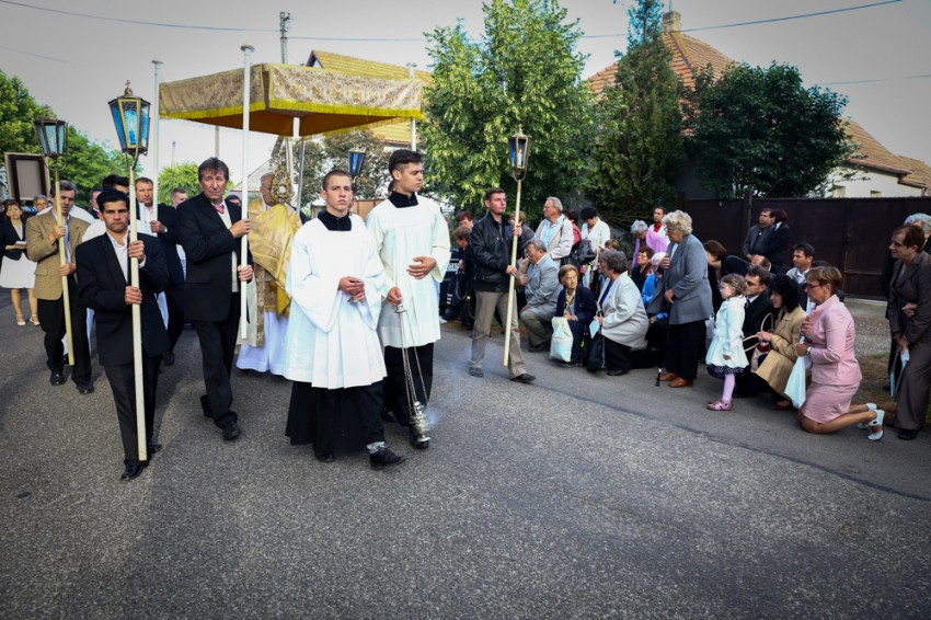 Erdő Péter bíboros a szentbeszédet követően megáldotta a vérrel könnyező Szűzanya kegyképének másolatát, amelyet az áldozás után körmenetben vittek végig a faluban az Oltáriszentséggel és egy Szűz Mária-szoborral együtt.