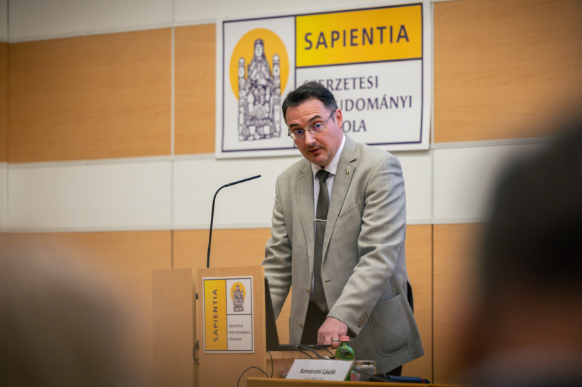 Bagyinszki Ágoston OFM házigazda rektor köszöntőbeszédében hangsúlyozta, közös gondolkodásra, párbeszédre hív ez a konferencia; találkozási teret szeretne létrehozni a Sapientia Főiskola.