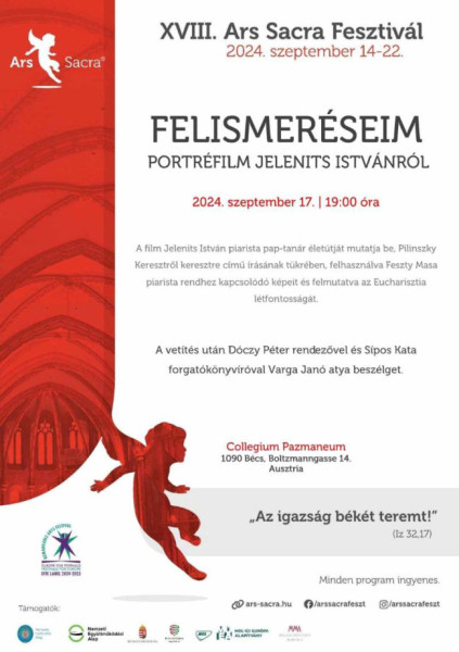 S.K.: Az Ars Sacra keretében szeptember 17-én vetítettük a Pázmáneumban Jelenits István piarista paptanárról, Jelkó atyáról készült Felismeréseim című portréfilmet, melynek rendezője Dóczy Péter, aki tanítványa is volt. Már tudtuk, hogy a 92. évében járó atya gyengélkedik, imádkoztunk is érte Bécsben, közösen. Pár napra rá, ahogy hazaértünk Budapestre, jött a szomorú hír, hogy elköltözött Teremtőjéhez, hatalmas életművet hagyva ránk. Jelenits tanár úr, nyugodj békében!