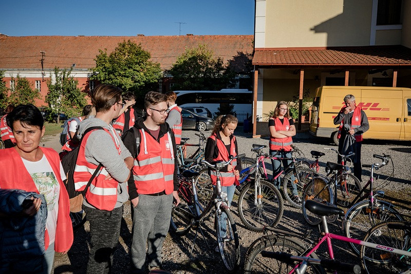A kerékpárokkal a Rákóczi Szövetség szervezésében fiatalok bicikliztek át a határon szeptember 28-án, pénteken kora délután. Ötven diák szállt fel Beregsurányban az ajándék biciklikre, és innen Zagyva Richárd, a Katolikus Karitász országos igazgatóhelyettese és Klaus Höhn németországi jószolgálati nagykövet vezetésével keltek át a határon. A mintegy tíz kilométer megtétele után a beregszászi római katolikus plébánián adták át a kerékpárok egy részét magyar diákoknak. A többit innen szállítják majd tovább a családokhoz a településen és Gyertyánligetre.