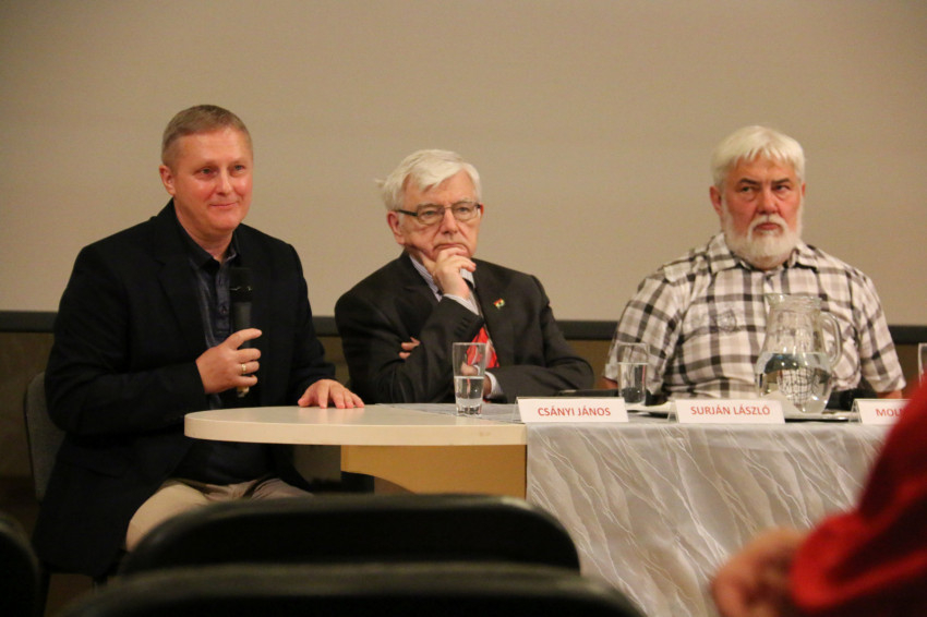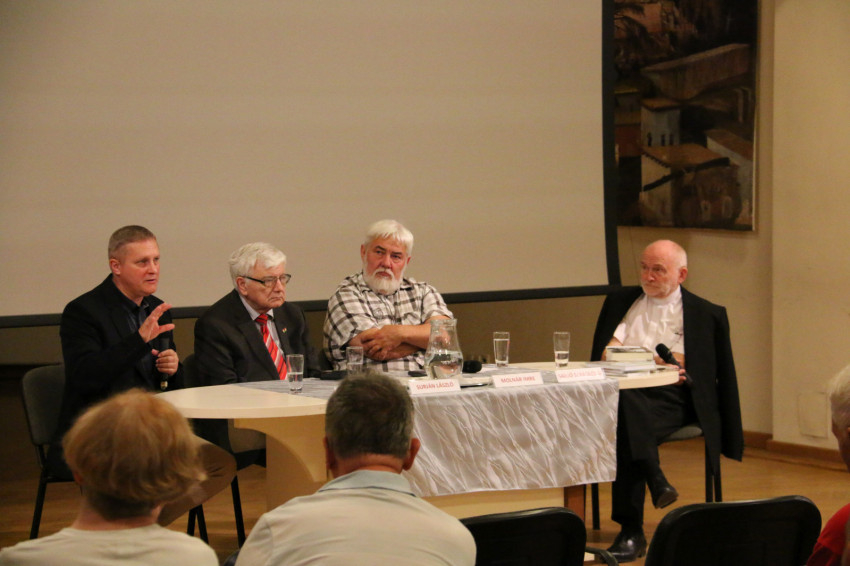 A filmvetítés után kerekasztal-beszélgetést tartottak, melynek résztvevői – Csányi János filmrendező és producer; Molnár Imre történész, Esterházy János életének legszakavatottabb kutatója és Surján László, a Charta XXI. elnöke, volt európai parlamenti képviselő – Sajgó Szabolcs SJ, a Párbeszéd Háza vezetőjének kérdéseire válaszoltak.