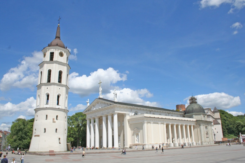 A kezdetekben a mai székesegyház helyén a litván pogány főistennek, Perkūnasnak állt a szentélye. Ennek helyére az idők folyamán négy különböző latin rítusú keresztény székesegyházat építettek.