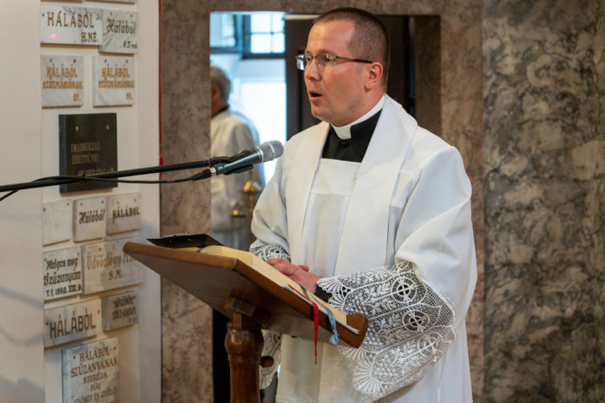 Máger Róbert püspöki irodaigazgató, a pécs-havihegyi templom igazgatója köszöntötte az ünnep résztvevőit.