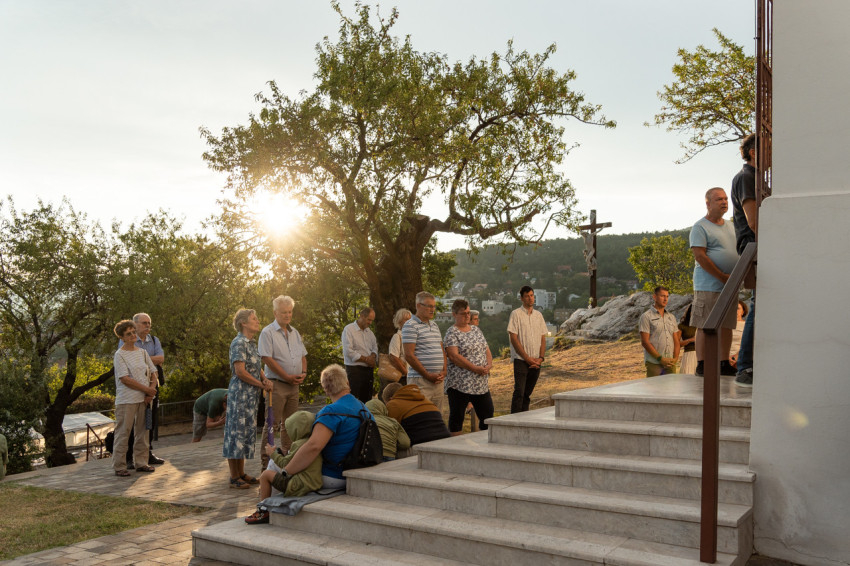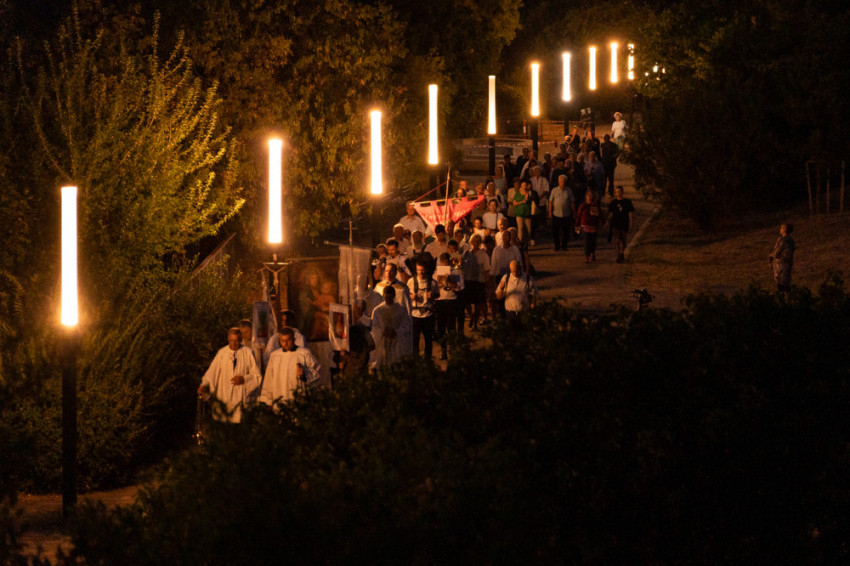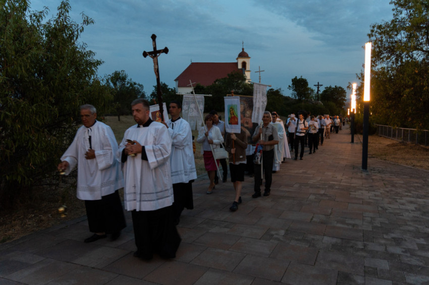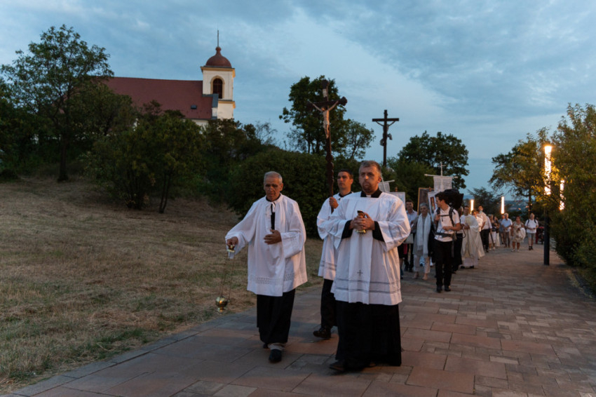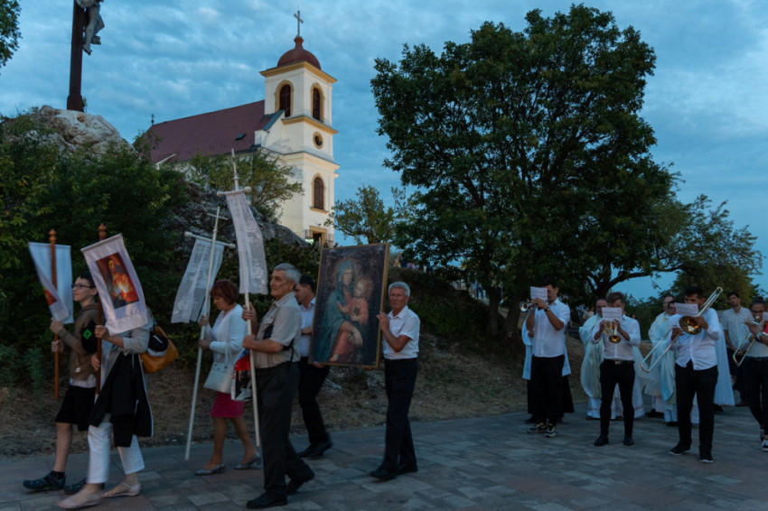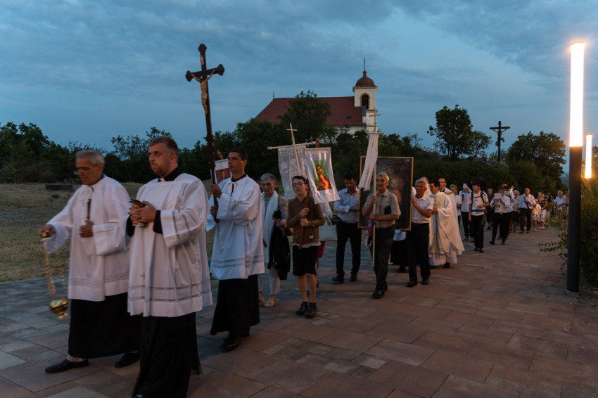 A szentmise után a hívek, zarándokok és a papok az Egyházért, a Pécsi Egyházmegyéért, a templom közösségéért és Pécs városáért imádkozva körmenetben kísérték a Havas Boldogasszony-kegykép másolatát a templom melletti sétányon.