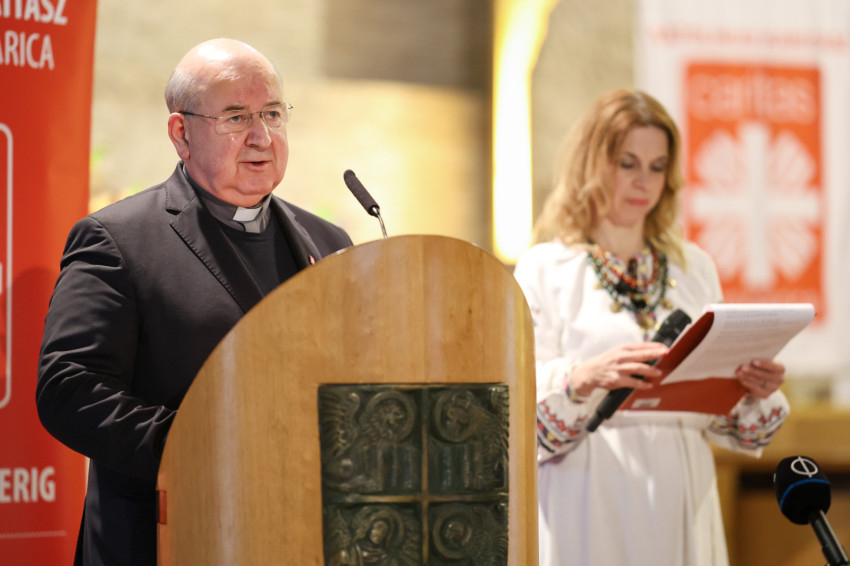 „Harmadik éve rövid műsorral, imádsággal ünnepelünk. Szomorú, hogy Önöknek harmadik éve kell otthonuktól távol tölteni a karácsonyt. Dúl a háború, felforgatja milliók életét. A nehézségek közepette fontos arra is gondolni, hogy Jézus születésével az Isten Fia jön el hozzánk. Ez arra tanít, hogy a legnagyobb sötétségben is megjelenik a fény, Isten ma is velünk van. Fogadják szertettel ajándékainkat, melyek a felebaráti szeretet és gondoskodás jelei, kifejezik, hogy imádságunkban hordozzuk Önöket. Kívánom, hozza meg az Úr eljövetele az egész világ számára a békét.”
