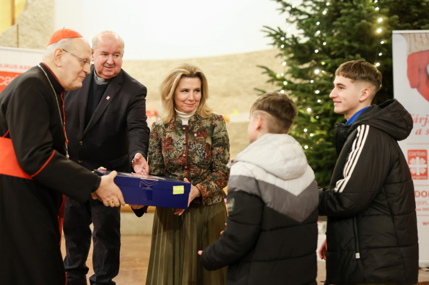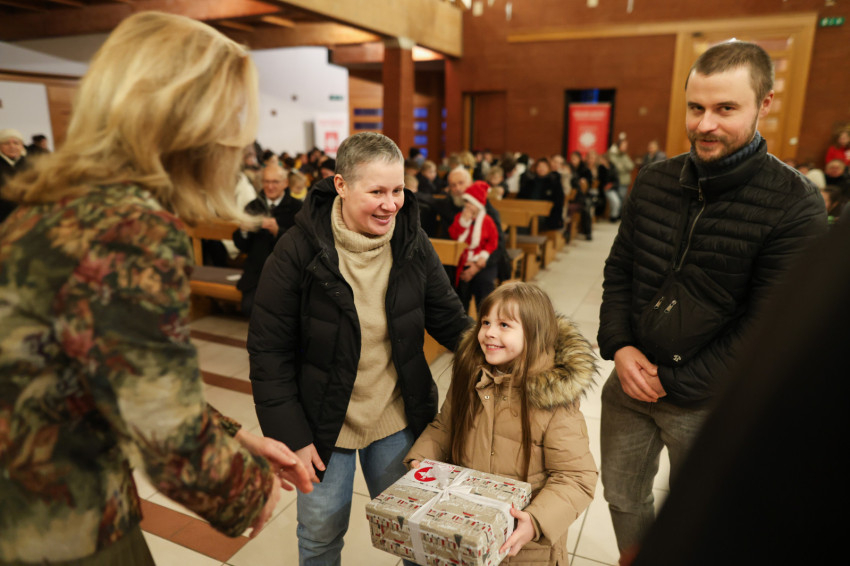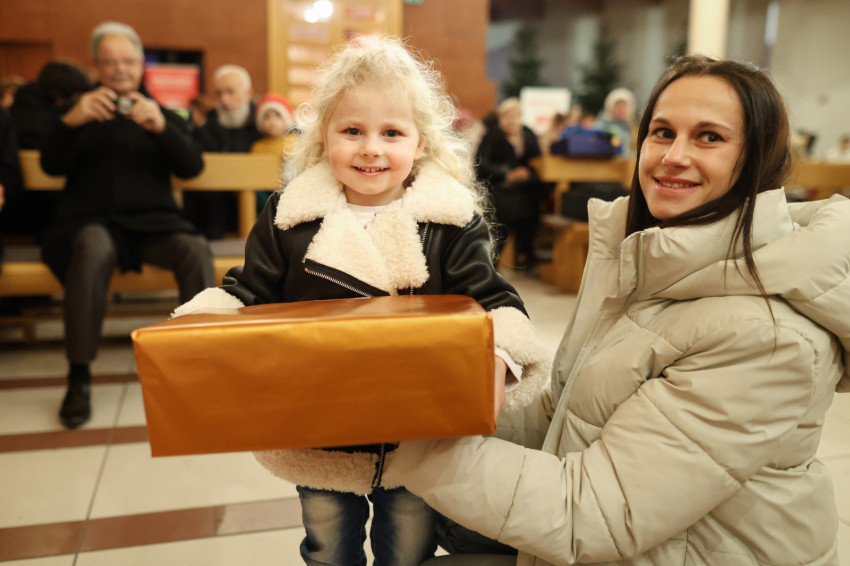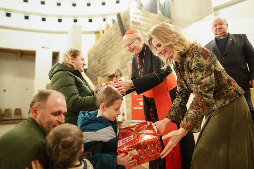 Erdő Péter bíboros és Herczegh Anita asszony név szerint szólította a családokat, és adta át az ajándékokat.