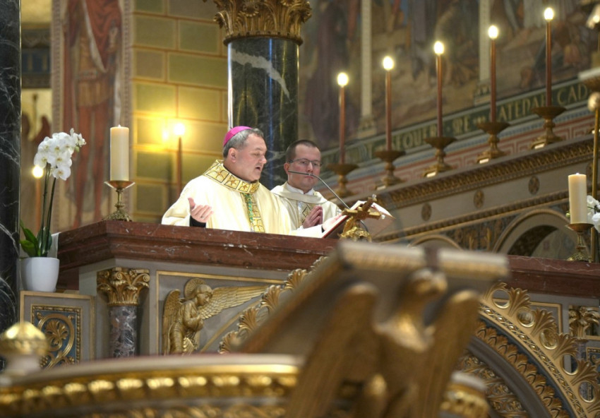 Marton Zsolt homíliájában elmondta: a hegyi beszéd nyitánya a nyolc boldogság, majd Jézus a régi és az új törvény viszonyáról beszél. Új gondolkodásra hívja a tanítványait, amelynek lényege a belülről, lélekből fakadó döntés és beszédében három ószövetségi és újszövetségi gondolatotállít szembe egymással. Az első: „Ne ölj! Aki öl, méltó az ítéletre. Én viszont azt mondom nektek, hogy méltó az ítéletre mindaz, aki haragszik testvérére” – ezért kell először bensőnket megtisztítani, a haragtól a rossz gondolatoktól.