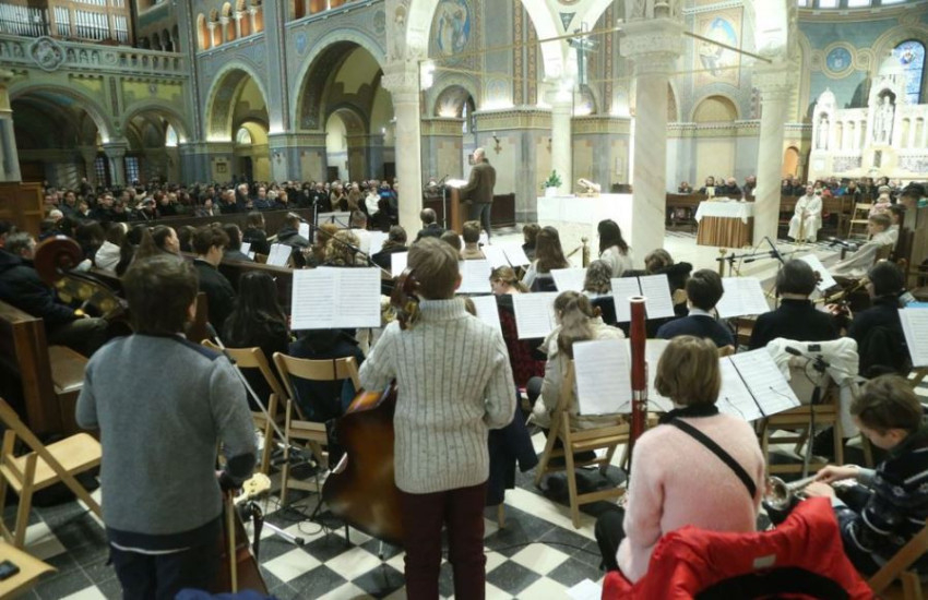 A szentmise előtt a Karolina Óvoda, Általános Iskola és Gimnázium diákjai adtak műsort, tanáruk, Szűcs Péter vezetésével.