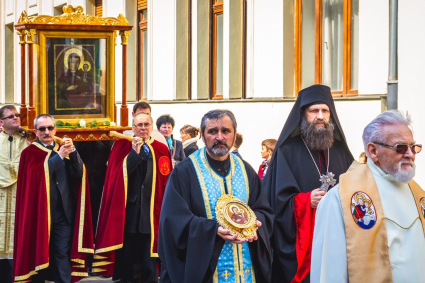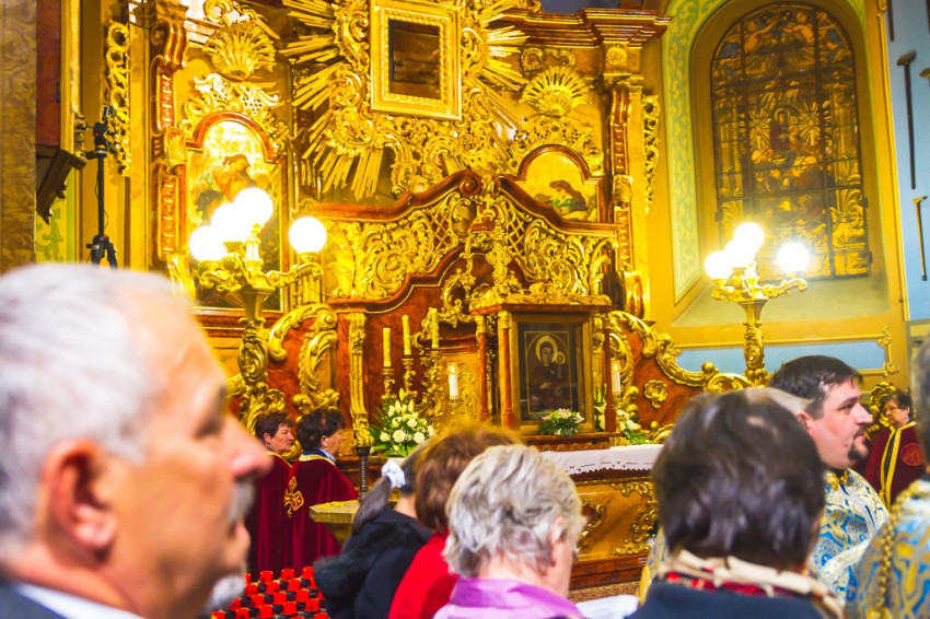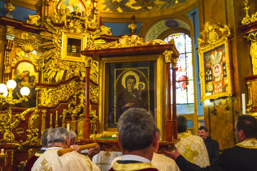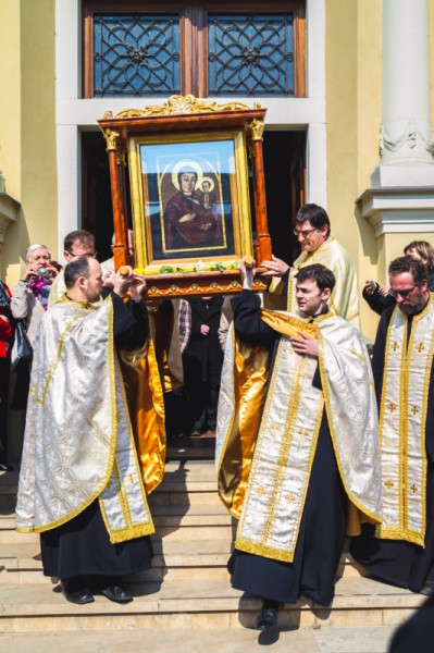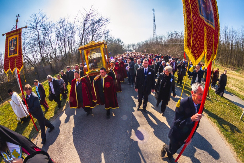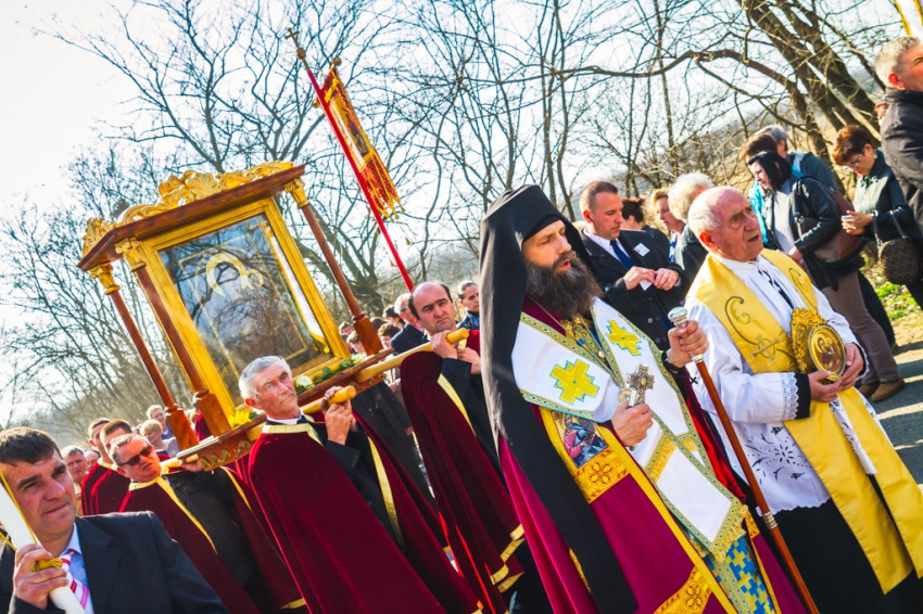 A szomszédos településről, Pócspetriből gyalogos processzió kísérte az ikont a kegytemplomig, ahol püspöki Parakliszt és vecsernyét tartottak.