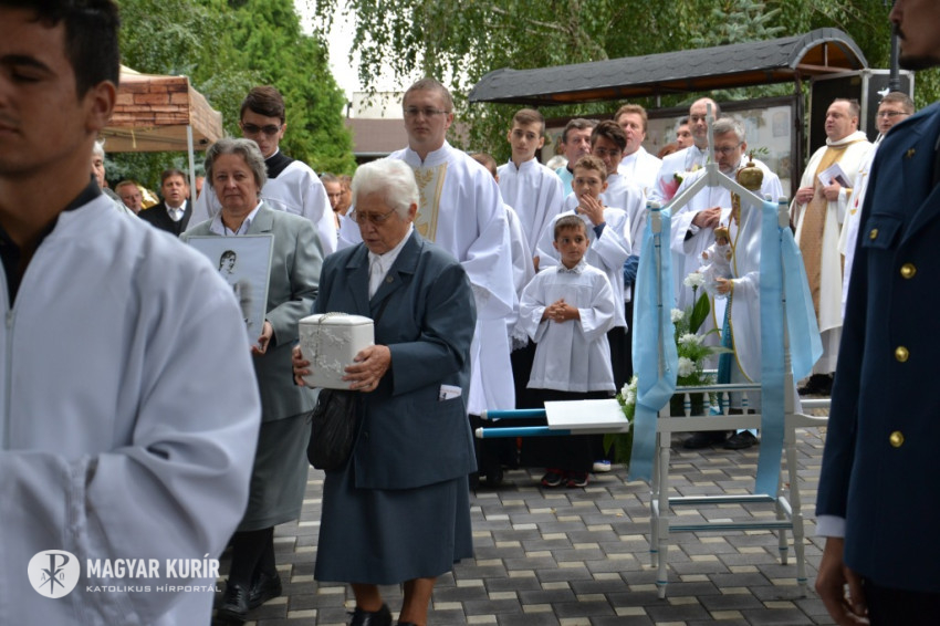 Az idei tallósi búcsú rendhagyó volt: Prenoszil Margit földi maradványait a szociális testvérek társaságának tagjai ünnepi körmenetben helyezték el a község temetőjéhez közeli lourdes-i barlangban, a Szűz Mária-szobor előtt.