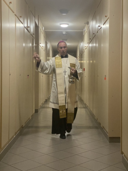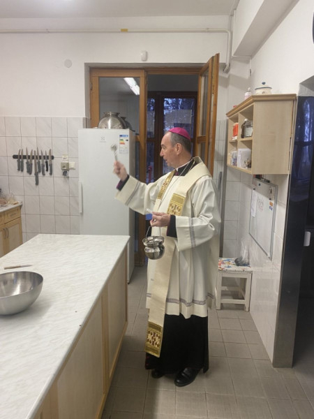 Ezt követően a főpásztor, valamint Takáts István és Tornavölgyi Krisztián atya végigjárva a püspöki hivatalt megáldották a helyiségeket és az ott dolgozókat. Az ajtókra pedig felírták: 20 + C + M + B + 24 – Christus Mansionem Benedicat, azaz Krisztus áldja meg e házat!
