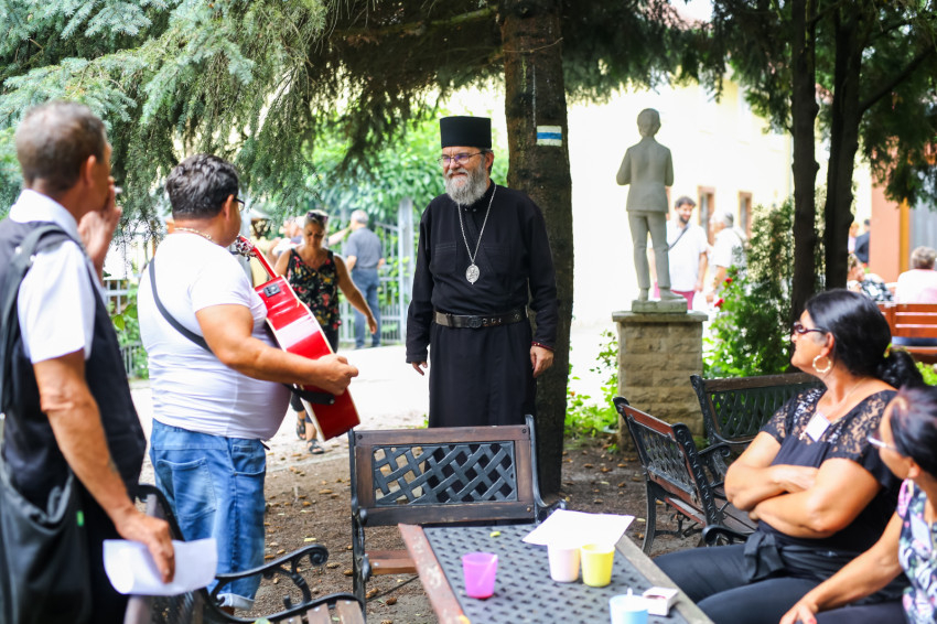 Látogatásunkkor Orosz Atanáz püspök mutatta be a szent liturgiát. „Hegymenetben vagyunk” – kezdte beszédét a főpásztor. „Láttam Uram a hegyeidet. S olyan kicsike vagyok én” – József Attila versével hívott meg, hogy Urunk színváltozása ünnepén átgondoljuk, miért akarunk, és miért kell felmennünk a hegyre, mire van szükségünk, hogy feljussunk a magasba.
