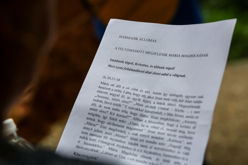 A lelkigyakorlat a Via Lucis – az öröm útjának végigjárásával, majd Balogh Győző János parókus elmélkedésével folytatódott, melyben arra adott ösztönzést, hogy mindenki gondolja át saját hegymenetét. Kérdéseket tett fel: Hol vagyok önmagamhoz képest? Az vagyok-e, akinek Isten elgondolt? Mi távolít el Istentől? Hol adom fel a küzdelmet? Melyek a gyengeségeim? Arra buzdított, tegyük fel magunknak ezeket a kérdéseket, és biztatott, képesek vagyunk változni. Kapaszkodókra hívta fel a figyelmet: a lelkigyakorlat a megállás, a befelé figyelés alkalma, amikor eltávolodva a mindennapoktól tudunk ránézni önmagunkra, szolgálatunkra. „Hűséges vagyok. Tudom, hogy Isten nem ver. Felmegyek a hegyre, kapok valamit, és ezzel az ajándékkal vissza kell térnem a szolgálatba, a közösségembe, a családomba.”