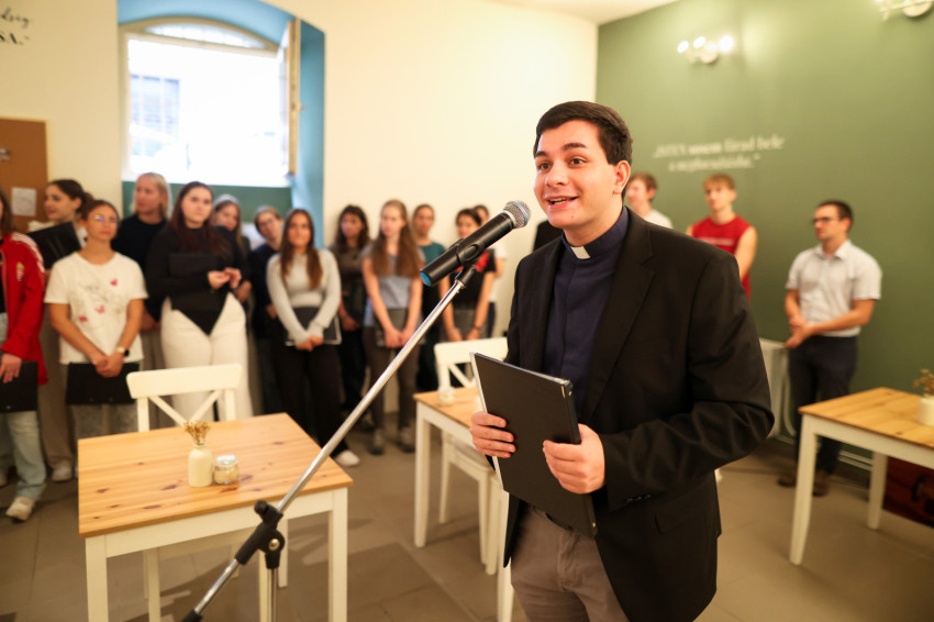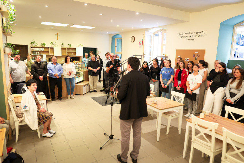 A megnyitón Horváth Zoltán, a budapest-terézvárosi Avilai Szent Teréz-templom plébánosa és Rónaszéki János, a budapest-pestszenterzsébeti Szent Erzsébet-templom káplánja, mint ötletgazda és kezdeményező mutatták be a kávézó hivatását.