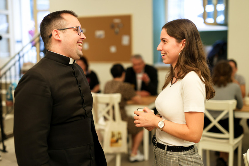Mohos Gábor, az Esztergom-Budapesti Főegyházmegye segédpüspöke, aki Isten áldását kérte a kávézóra Edit Steintől idézett: „Az évszázadok során talán nagyonis megszoktuk a passzív magatartást az Egyházban... Értjük-e, hogy miről is van szó? Bizony arról, hogy intenzívebben éljük együtt és tapasztaljuk meg Krisztus életét együtt az Egyházzal.