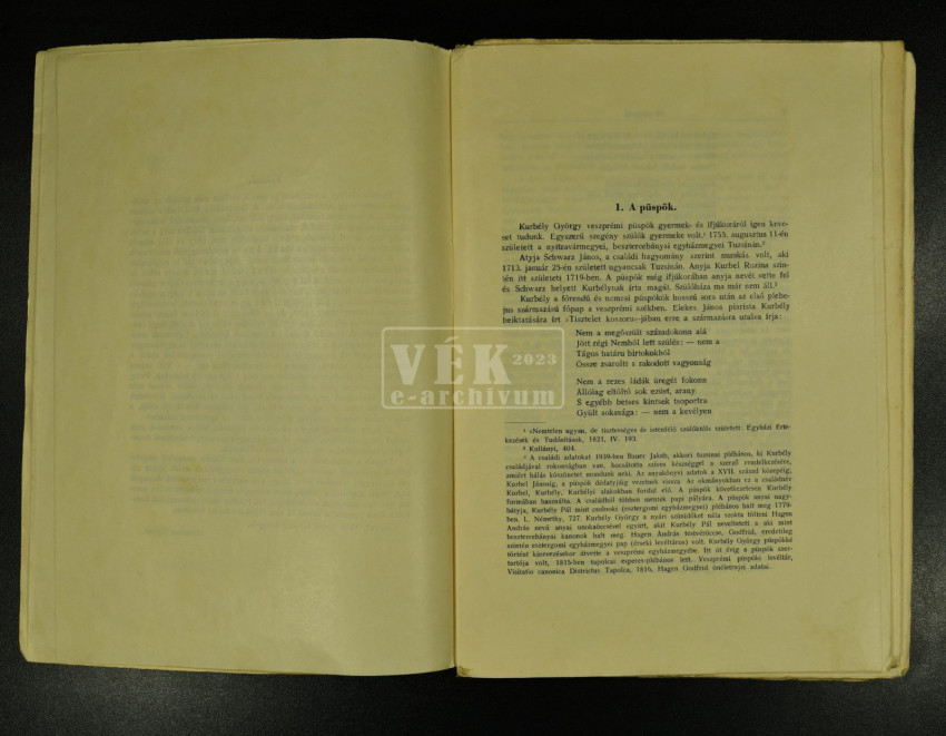 A cikkben ismertetésre kerülő kötet a Veszprémi Püspökség egyik főpásztorának életútját mutatja be a 19. század első feléből. A kötetet Dr. Hermann Egyed premontrei szerzetes, püspöki levéltáros készítette, és 1947-ben jelent meg a Veszprémi Egyházmegye múltjából sorozat 11. köteteként.