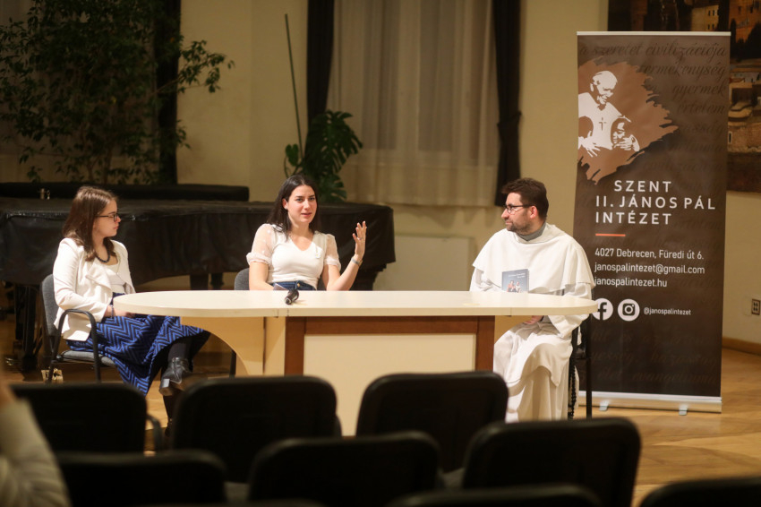 A Párbeszéd Házában tartott beszélgetés elején Tokodi László OP, a Szent II. János Pál Intézet elnöke elmondta, ők is szerettek volna tisztelegni valamivel az évforduló előtt.