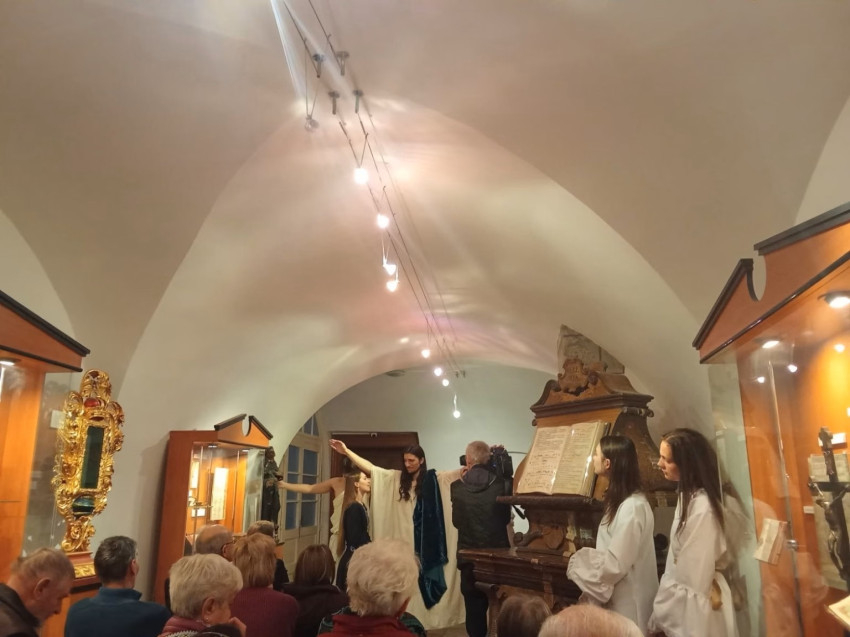 A program során a több mint két évtizede működő Boldog Özséb Színtársulat tagjai – a Pázmány Péter Katolikus Egyetem hallgatói – Szatai Dóra rendezésében részleteket adtak elő a csíksomlyói passiójátékokból. A jelenlévők kiosztott füzetekből együtt olvasták fel a drámaszövegeket, így nemcsak szemlélői, hanem alakítói is lettek az eseménynek. A résztvevők szerepekbe lépve jelenítették meg a Szentháromság személyeit, bibliai alakokat – Ádámot, Szűz Máriát vagy Péter apostolt –, miközben énekek és szövegek révén saját élményként tapasztalhatták meg a hit igazságait.