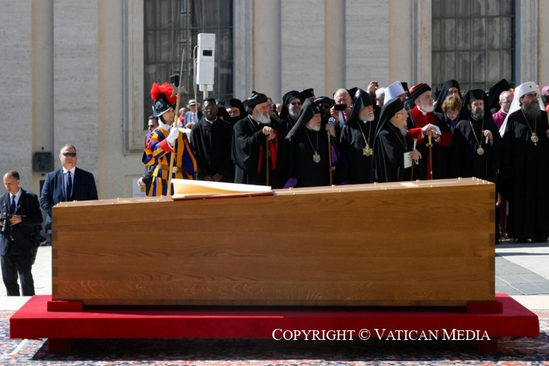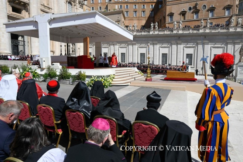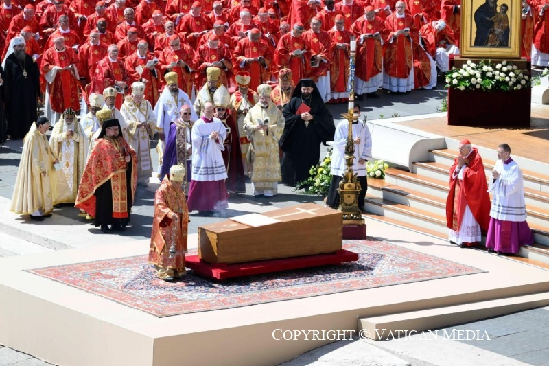 A temetési misén a testvéregyházak számtalan képviselője és más vallások vezetői is részt vettek, szép jeleként annak, hogy Ferenc pápa mennyire az egységet képviselte. A remény szentévében a fiatalok jubileumára érkezők másokkal együtt már előző estétől a tér közelében várakoztak, hogy aztán minél közelebb lehessenek a szeretett pápához a temetési szertartáson. Mire a szentmise elkezdődött, már nemcsak a tér, hanem a környező utcák is megteltek azokkal, akik személyesen szerettek volna jelen lenni és búcsút venni ettől a pápától, aki oly közel állt az emberekhez, aki az evangélium erejével igyekezett gyógyítani sebzett világunkat.