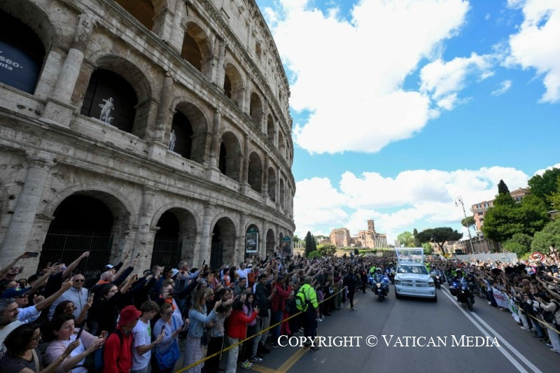 Az utolsó kép, amely vele kapcsolatban megmarad szemeinkben és szíveinkben, múlt vasárnapi. Húsvét ünnepén Ferenc pápa súlyos egészségügyi problémái ellenére személyesen akart áldást adni a Szent Péter-bazilika erkélyéről, majd le akart jönni erre a térre, hogy a fedetlen pápamobilból köszöntse a húsvéti szentmisére egybegyűlt óriási tömeget.