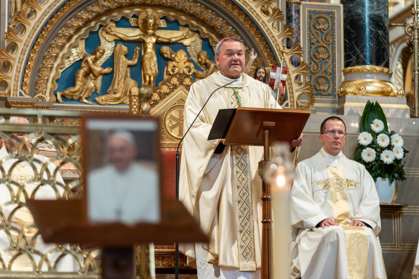Az evangéliumot követő homíliában a főpásztor felhívta a figyelmet, hogy emlékezésében elsősorban Ferenc pápa tanításait és Michael W. Banach nuncius Szentatyáról mondott szavait szeretné idézni, hogy valóban hitelesen jelenítse meg ezen az estén Ferenc pápát.