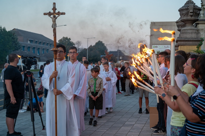 A szentmisét fáklyás körmenet követte a Jézus Szíve templomtól egészen a kertvárosi, Szűz Mária Szeplőtelen Szíve templomig.
