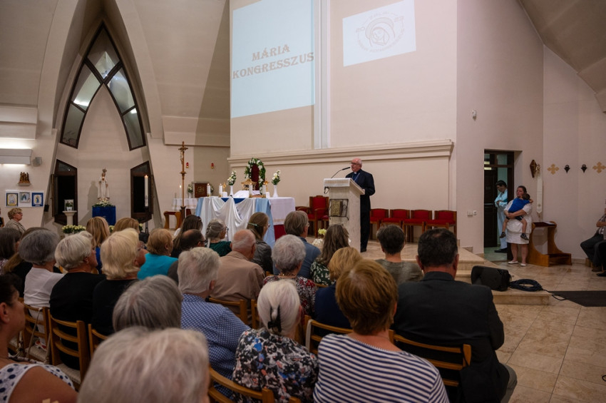 A litánia után Varga László kaposvári megyéspüspök tartott előadást Szűz Mária, a nők példaképe címmel.