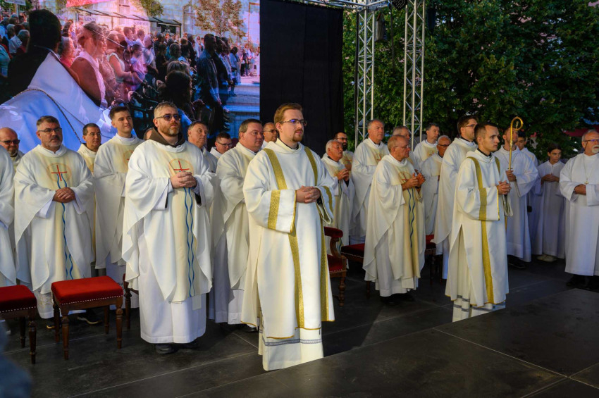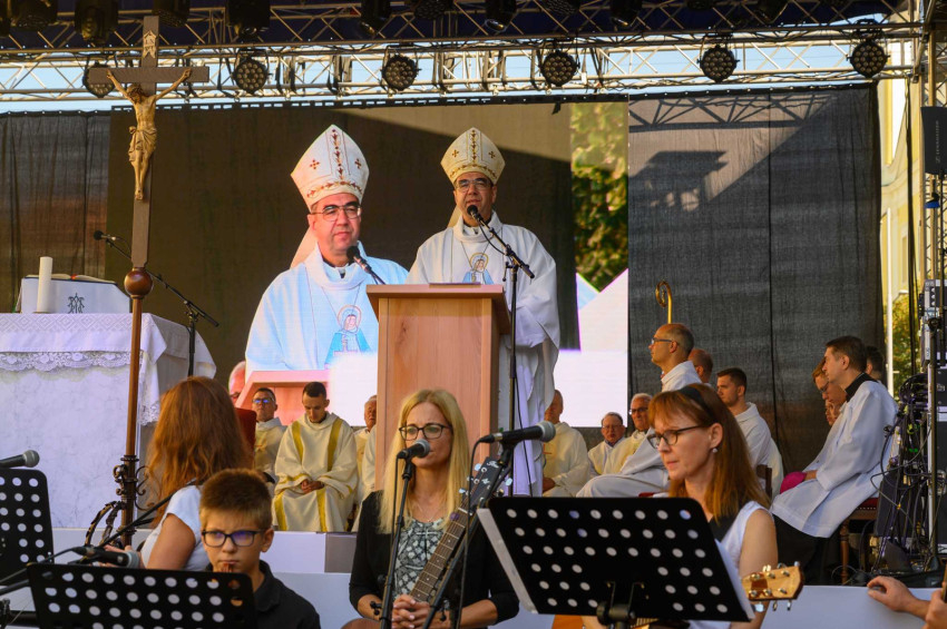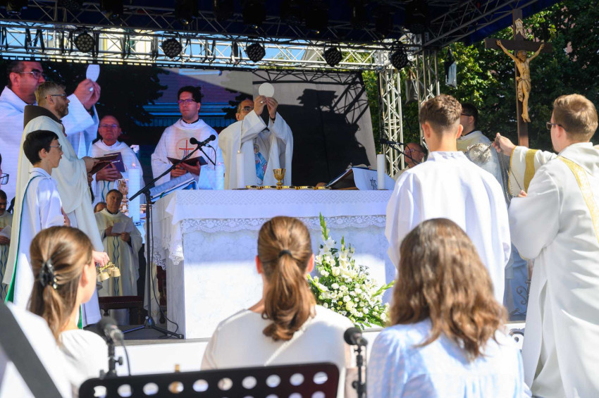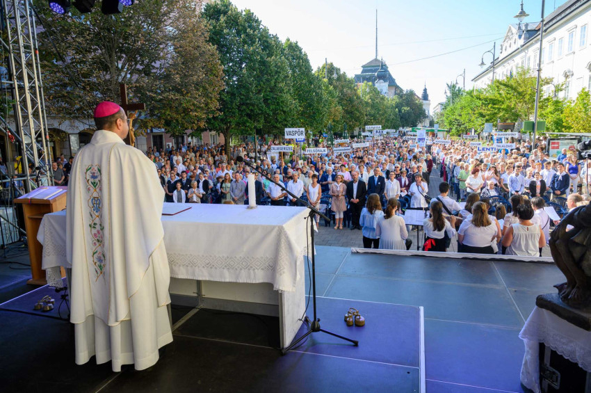 Szeptember 9-én, szombaton a délelőtti szabadtéri szentmisét Székely János szombathelyi megyéspüspök mutatta be a Széchenyi téri nagyszínpadon felállított oltárnál.