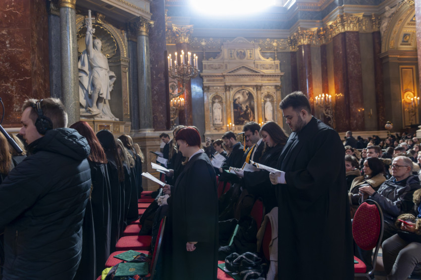 A bazilikában átvett oklevelek így egyszerre jelentették a lezárást és a kezdetet is. Lezárult egy meghatározó életszakasz, amelynek évei alatt a megszerzett tudás most kézzelfogható formát öltött – és kezdetét vette egy másik, amelyben már mindenkinek saját döntései adják meg az irányt. A Pázmány BTK friss diplomásai azonban nem üres kézzel lépnek tovább: magukkal viszik azt a hitet, közösséget és szemléletet is, amely az egyetemen eltöltött években formálódott bennük, és amely a jövő bizonytalanabb pillanataiban is tájékozódási pont maradhat.
