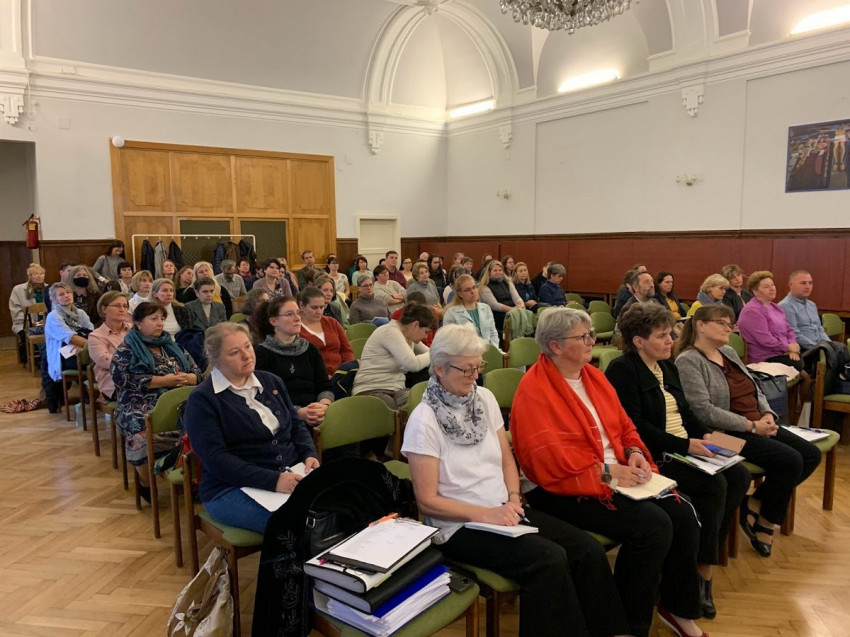 Ezután az aktuális kérdések, problémák, adminisztrációs feladatok megtárgyalása következett Visiné Farkas Katalin oktatásügyi referens előadásában. Semegi Mária, a Dunamenti Espereskerület referense ismertette a katolikus digitális tananyagtárat, a KATTAN-t. Fehér Margit, a Vértesi Espereskerület szaktanácsadója beszámolt az október 13-i alsószentiváni zarándoklatról.