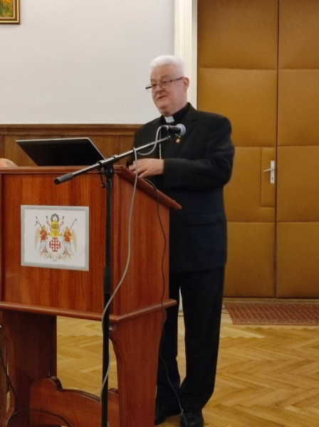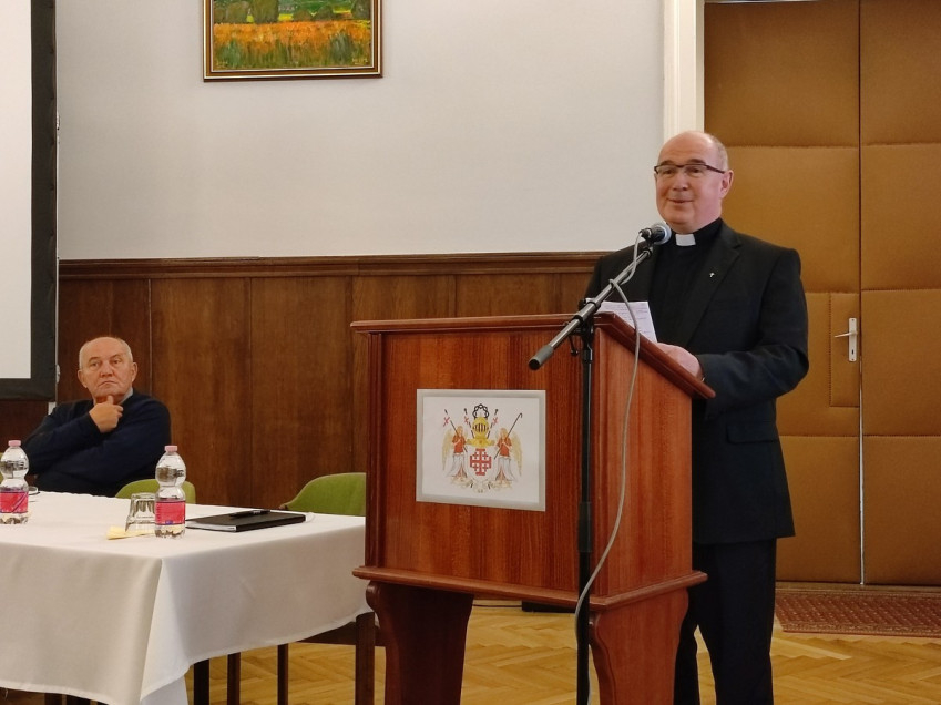 A rövid szünet után Ugrits Tamás irodaigazgató, püspöki helynök előadása következett. Ugrits Tamás rámutatott: Szakmaiságunk összeköt bennünket Jézussal, hiszen tőle kaptuk a feladatot. Szolgálatunk alapja a hit, a személyes kapcsolat Jézus Krisztussal. Jézus munkatársakat választott maga mellé, először a 12 apostolt, majd a 72 tanítványt. Jézus közelében vagyunk, szüksége van ránk, a munkánkra. A tanítványoknak tanítaniuk és gyógyítaniuk kellett – tanítani tanulva, alázattal, gyógyítani gyógyulva, Jézus erejével, kegyelmével!
