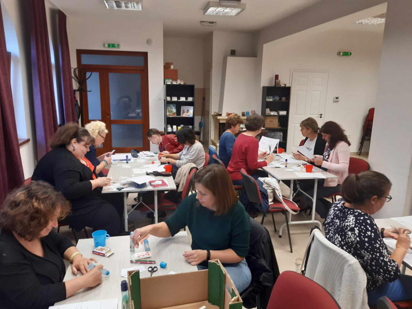Október 6-án Balatonlellén Wald Péterné Tímea hitoktató várta a kollégákat, Kreatív foglalkozás – Játékok készítése a hittanórákhoz című gyakorlati képzésével. A sok-sok örömteli játék utána a hitoktatók elkészíthették azt az alapcsomagot, amelyet a hittanórákon használni tudnak tanítványaikkal összefoglaláskor, ismétléskor, új anyag tanításakor – vagy ha az öröm kedvéért játszani szeretnének. A játékok tankönyvfüggetlenek, többször is felhasználhatók, tartós anyagból készültek.