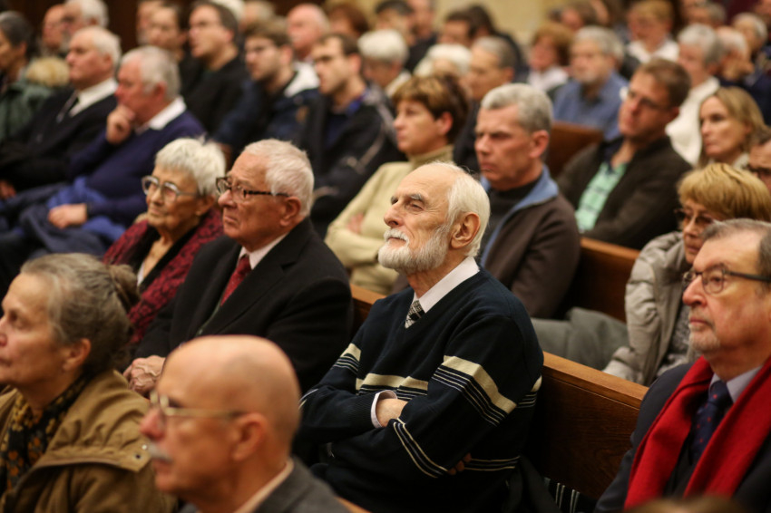 Sok pap panaszkodik a hívek pontatlansága miatt, melyben valljuk meg, sok igazságuk van. A december elsejei szentmisére azonban nagyon sokan jóval hat óra előtt érkeztek, mert sejtették, megtelik a kápolna, sokan szeretnék Jelenits Istvánnal együtt ünnepelni hatvan esztendő kegyelmi ajándékait. A 87 esztendős szerzetes, teológus tanárra generációk gondolnak szeretettel, így nem csoda, hogy egykori, már öregedő tanítványok közül sokan házastársukkal, gyerekeikkel, unokáikkal jöttek a szertartásra, s köszöntötték egymást egykori iskola- vagy osztálytársak.