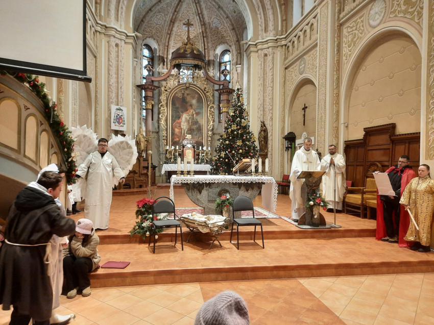 A közösség tagjai aktívan vettek részt a liturgiában: felolvastak, énekeltek és pantomim formájában eljátszották az evangéliumot. Szentáldozáshoz járultak azok, akik ezt tudatosan meg tudják élni, a többiek áldásban részesültek. Közben karácsonyi dalokkal dicsőítették az Urat.