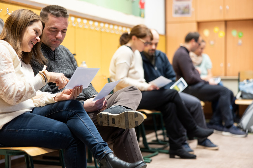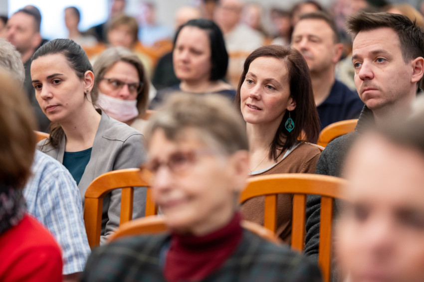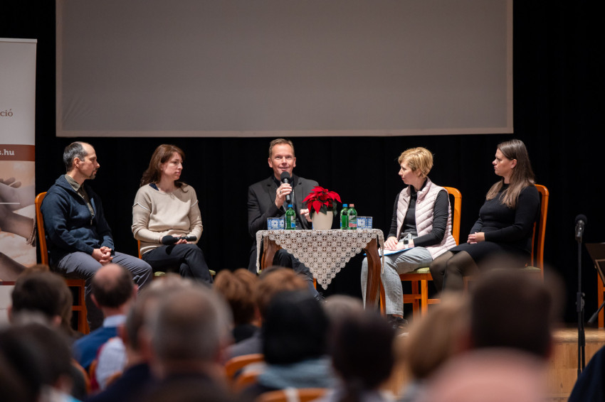 Az előadást követő kerekasztal-beszélgetés lehetőséget adott egy 4 gyerekes házaspár és egy, gyermekét egyedül nevelő anya életére ránézve áttekinteni, hogyan születnek meg a válaszok konkrét élethelyzetekben.